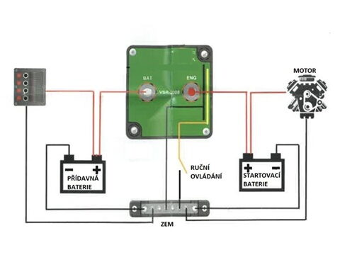 - Automatické relé pro dobíjení druhé baterie 12V/140A