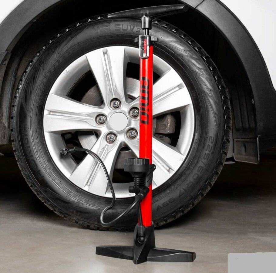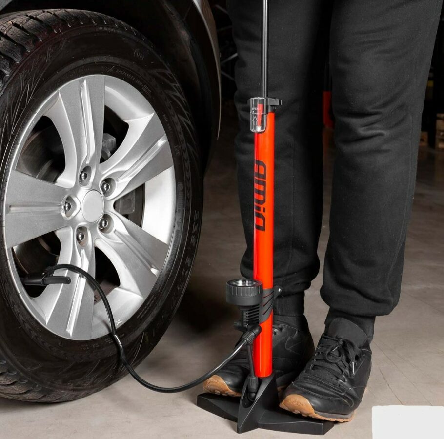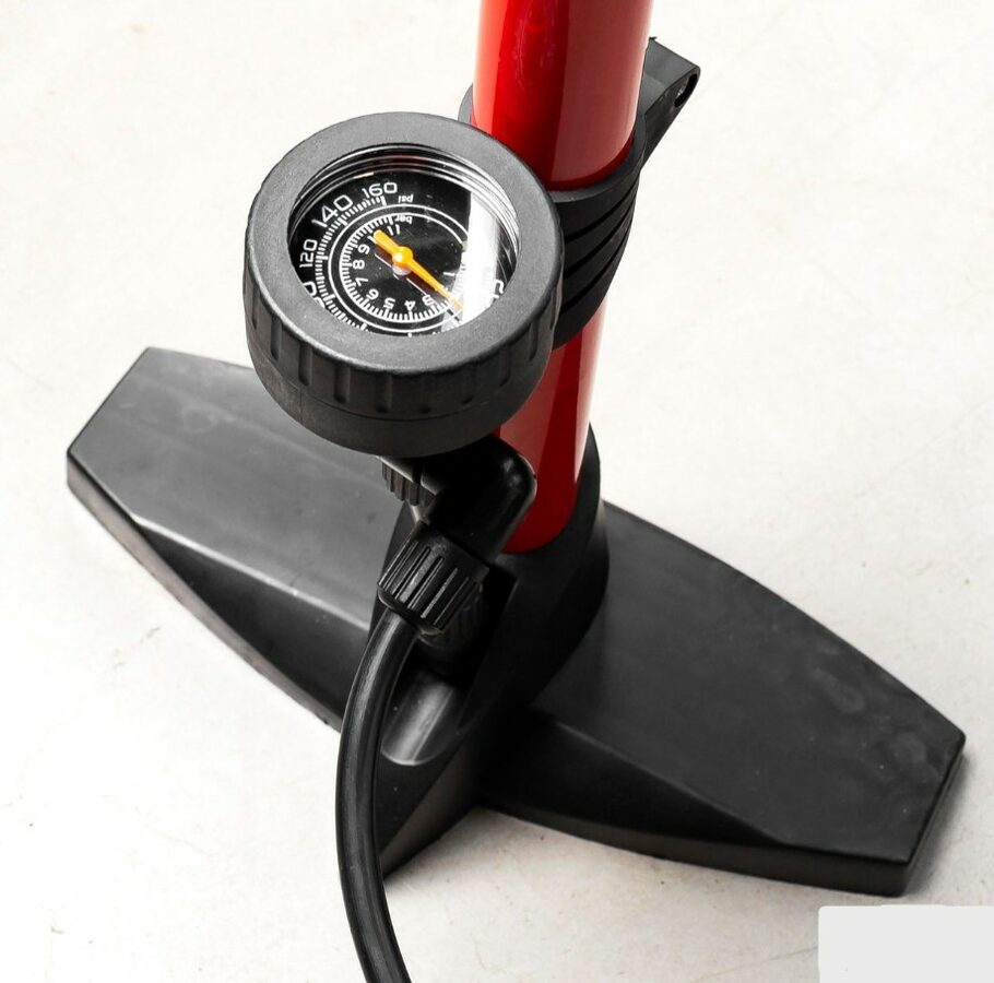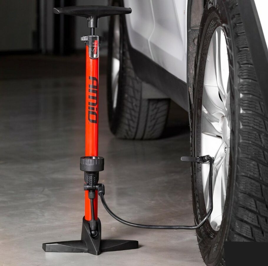 Robustní ruční hustilka s manometrem a maximálním tlakem 11 BAR / 160 PSI.