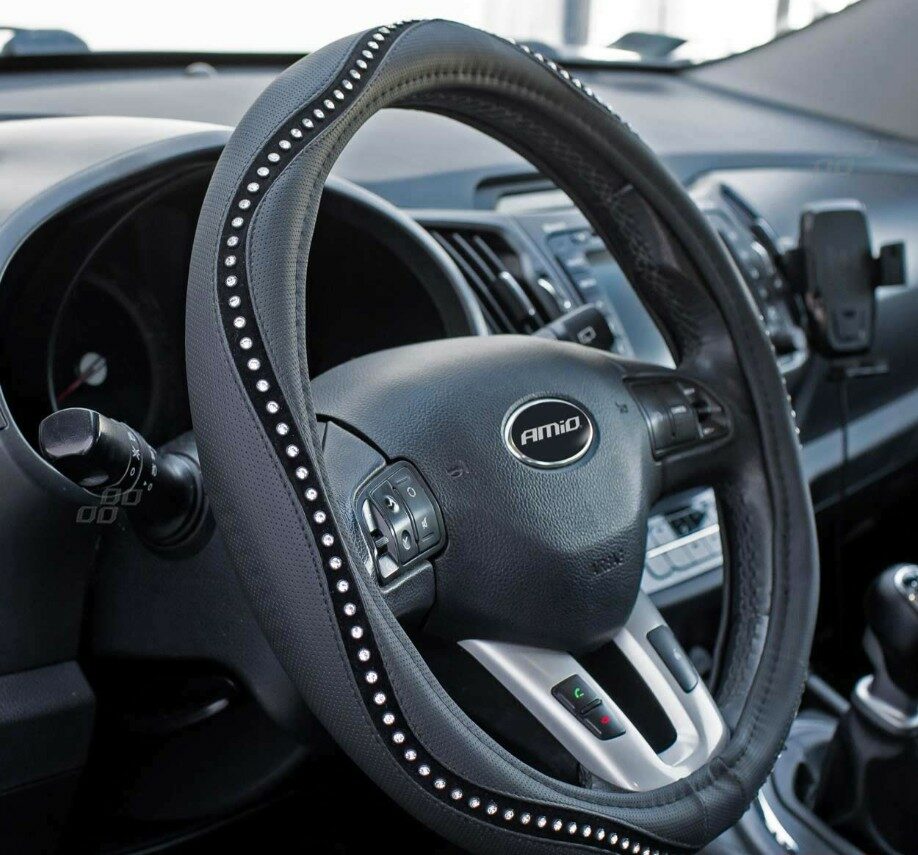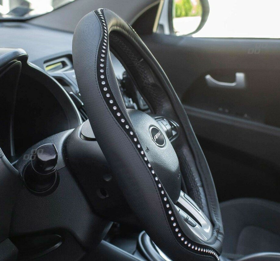Potah volantu s okrasnými kamínky UNI 37-39cm - černý