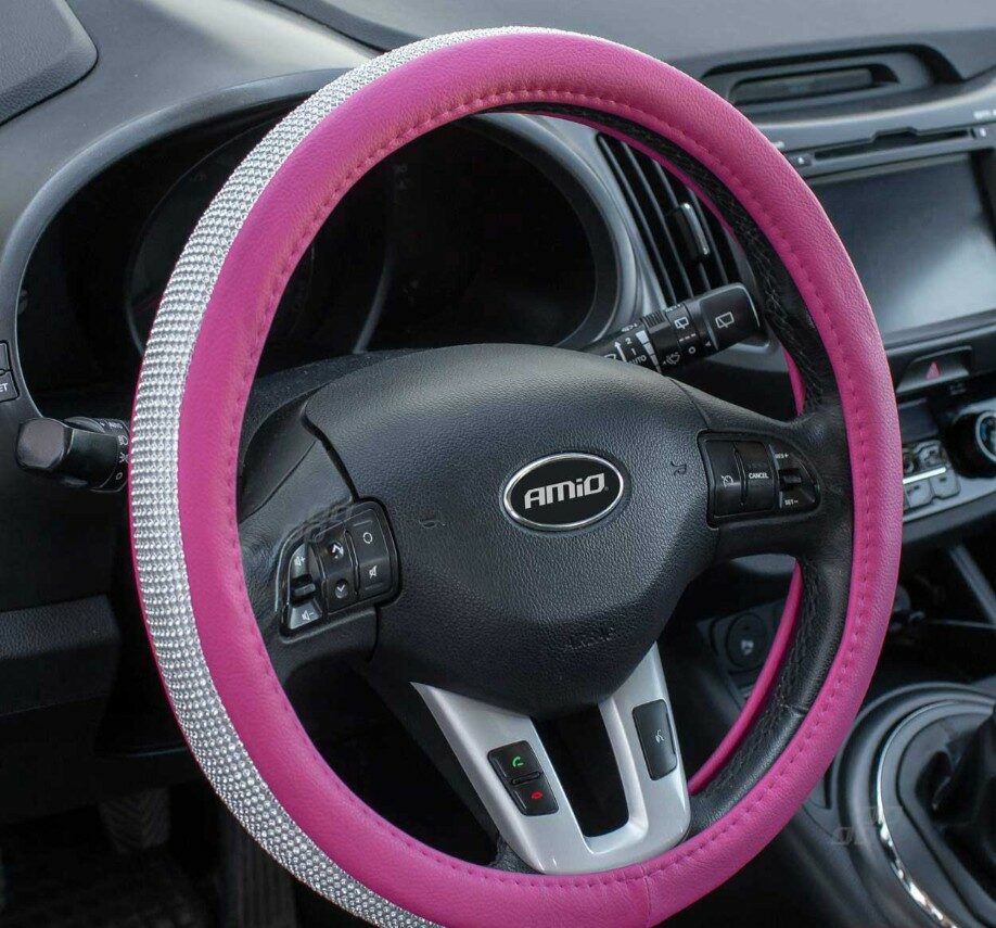 Potah volantu LUXURY s kamínky UNI 37-39cm - růžový