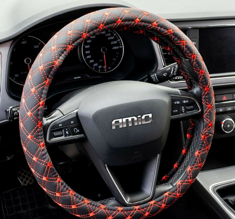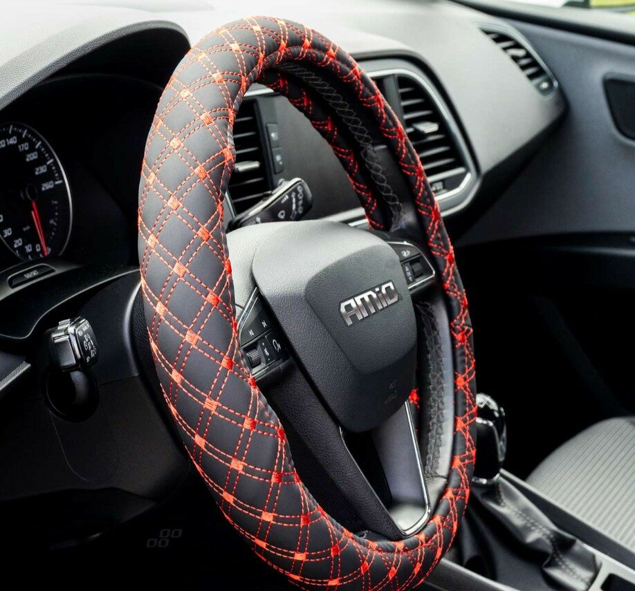 - Potah volantu červeně prošívaný UNI 37-39cm - černý