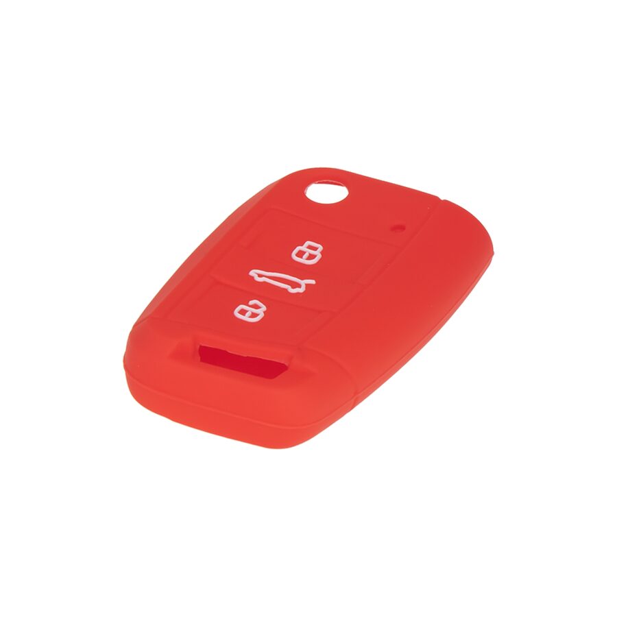 Červený silikonový obal pro autoklíč Škoda, VW, Seat. Chrání klíč před pádem, znečištěním a oprotřebením (vhodné pro služební vozidla). Barevně osvěží váš stávající klíč, barvami také můžete oddělit různé uživatele, popř.