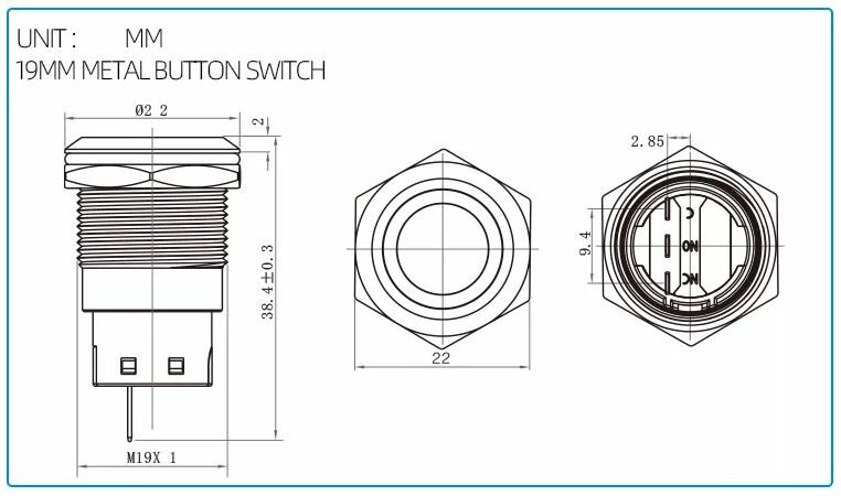 • montáž do otvoru: o 19 mm