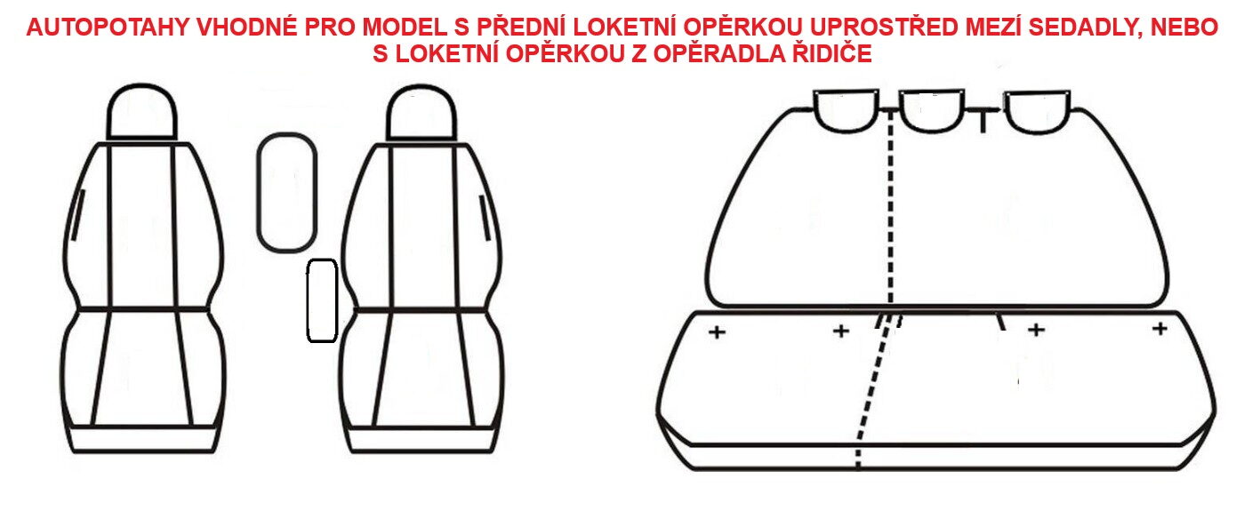 Předni sedadla mají otvory pro stolky na zadní straně opěradel, středovou- nezávislou přední loketní opěrku a přední loketní opěrku z opěradla řidiče- VHODNÉ PRO OBĚ VARIANTY, airbagy, kapsy.