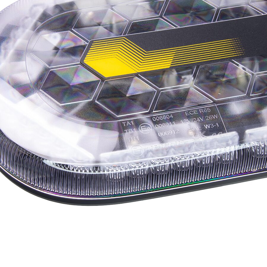 Oranžová miniaturní LED světelná rampa je díky svým rozměrům vhodná pro všechny typy vozidel. Je určená pro vozidla u kterých je kladen zvláštní důraz na výstražný efekt.