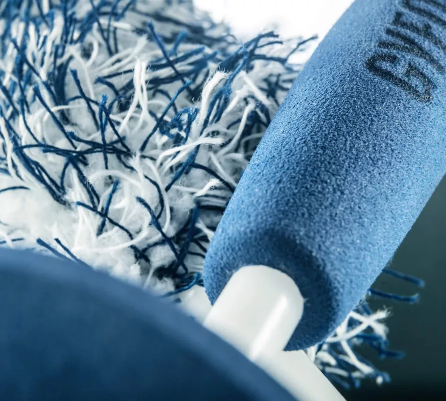 Q2M WheelBrush je vyroben ze stejně kvalitního mikrovlákna jako je mycí rukavice Q2M Smoothie.