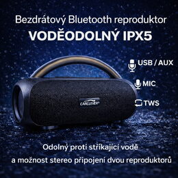 CARCLEVER bezdrátový Bluetooth reproduktor, voděodolný USB, AUX, MIC, TWS, IPX5