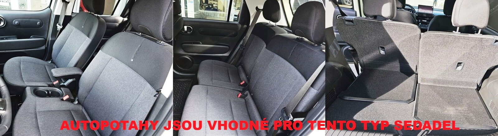 Kvalitní, silné autopotahy z čalounické látky včetně zadní části zadních opěradel v zavazadlovém prostoru.