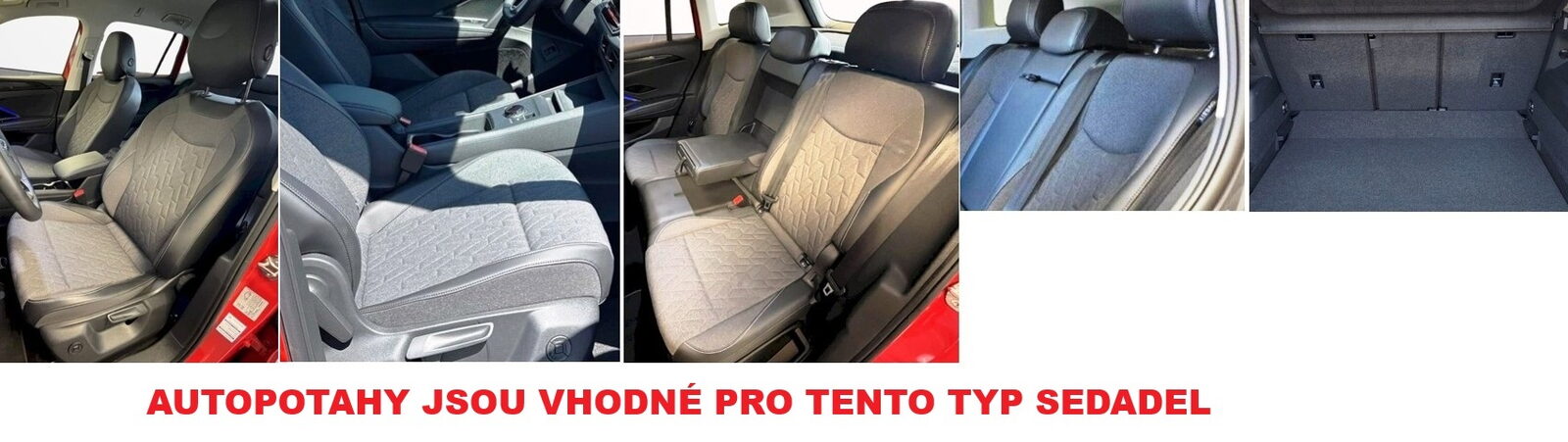Zadní opěradla jsou potažená také v zavazadlovém prostoru - žádné gumičky a háčky v kufru, ale kompletní potah.Velmi kvalitní, silné autopotahy z čalounické látky včetně zadní části opěradel. Silné polstrování, laminovaná spodní vrstva textilního materiálu. Potahy lze prát na 30°, velmi snadná montáž. Autopotahy dokonale pasují, a silná laminace autopotahy zpevňuje a zabraňuje sklouzávání potahů ze sedadel. Sada autopotahů na celé auto včetně povlaků hlavových opěrek.