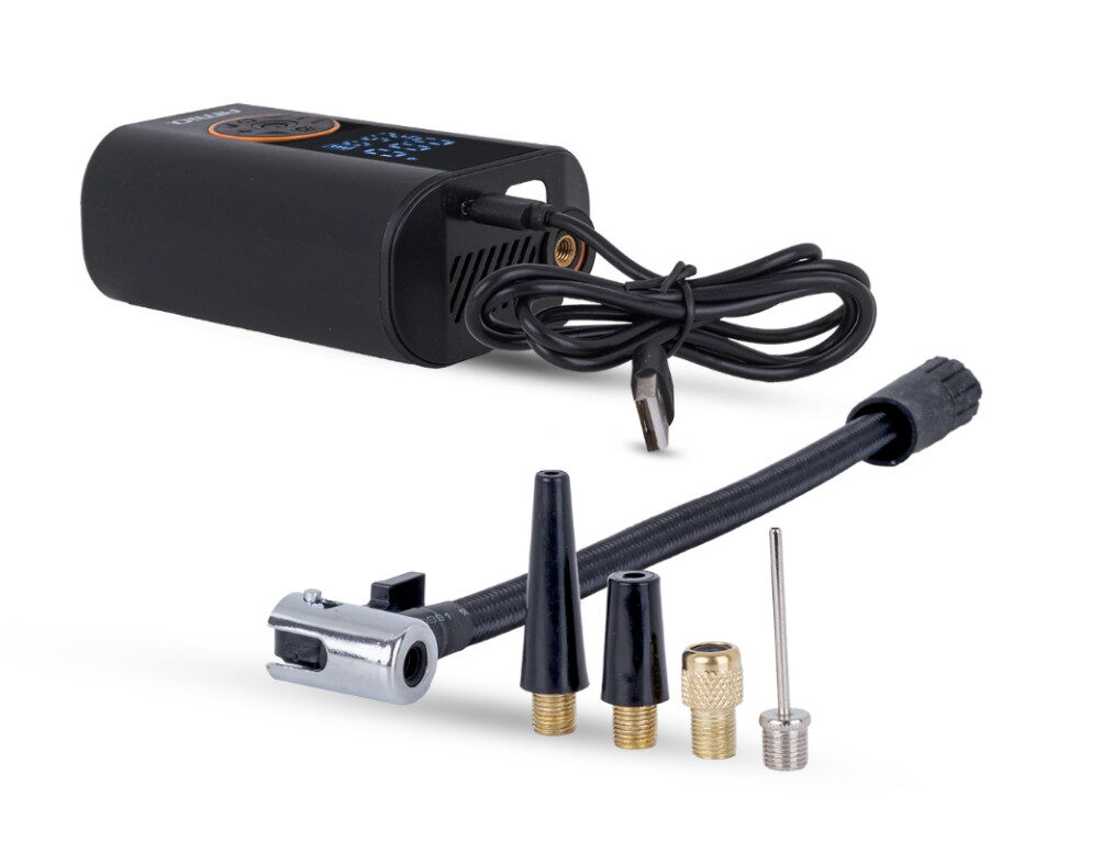 Pružná vzduchová hadice o délce 25 cm je integrována do těla zařízení a v balení se nacházejí 4 adaptéry umožňující huštění různých typů ventilů - automobilových, jízdních kol a také ventilů pro sportovní a rekreační vybavení.