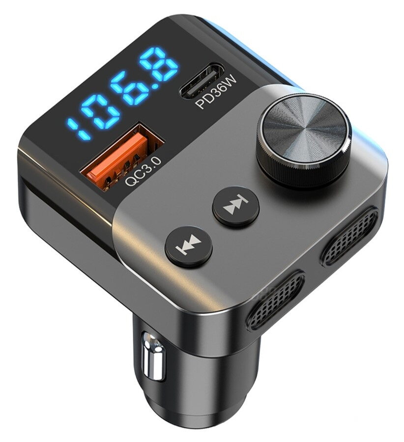 Multifunkční FM transmitter umožňuje přehrávání hudby a vedení telefonních hovorů v autě bez zabudovaného Bluetooth modulu.