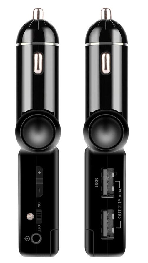 Kompaktní a praktický FM transmitter s možností regulace úhlu nastavení, který usnadňuje přizpůsobení zařízení interiéru vozidla.