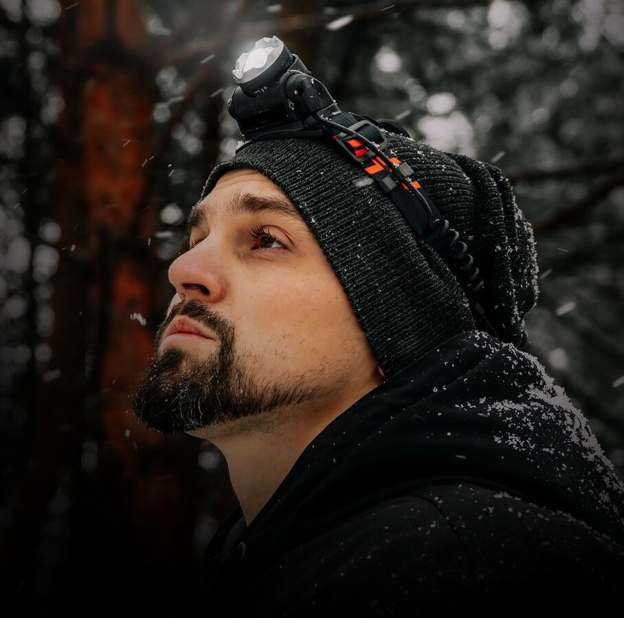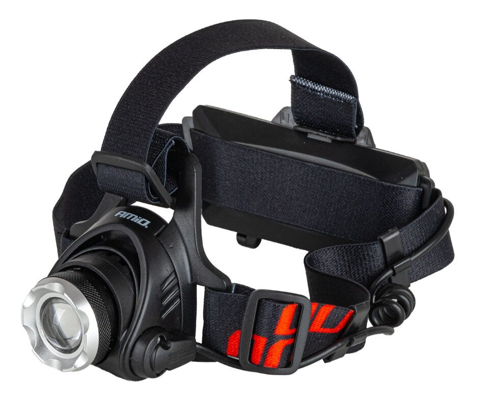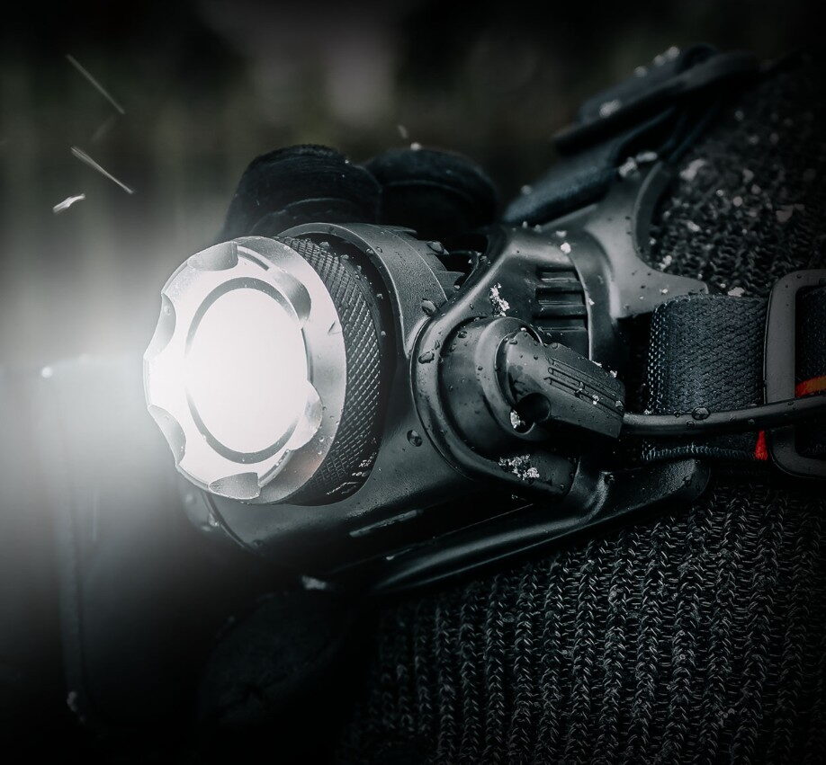 Odolná a funkční čelovka, vyrobená z pevné hliníkové slitiny, vybavena výkonnou LED diodou T6 a funkcí přiblížení umožňující nastavit šířku a dosah paprsku.