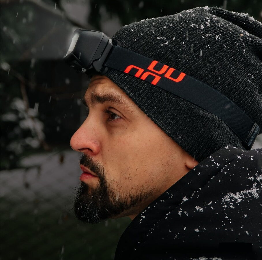 Čelovka se ovládá pomocí dvou horních tlačítek, která umožňují výběr režimů svícení.