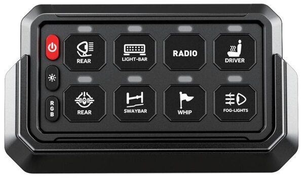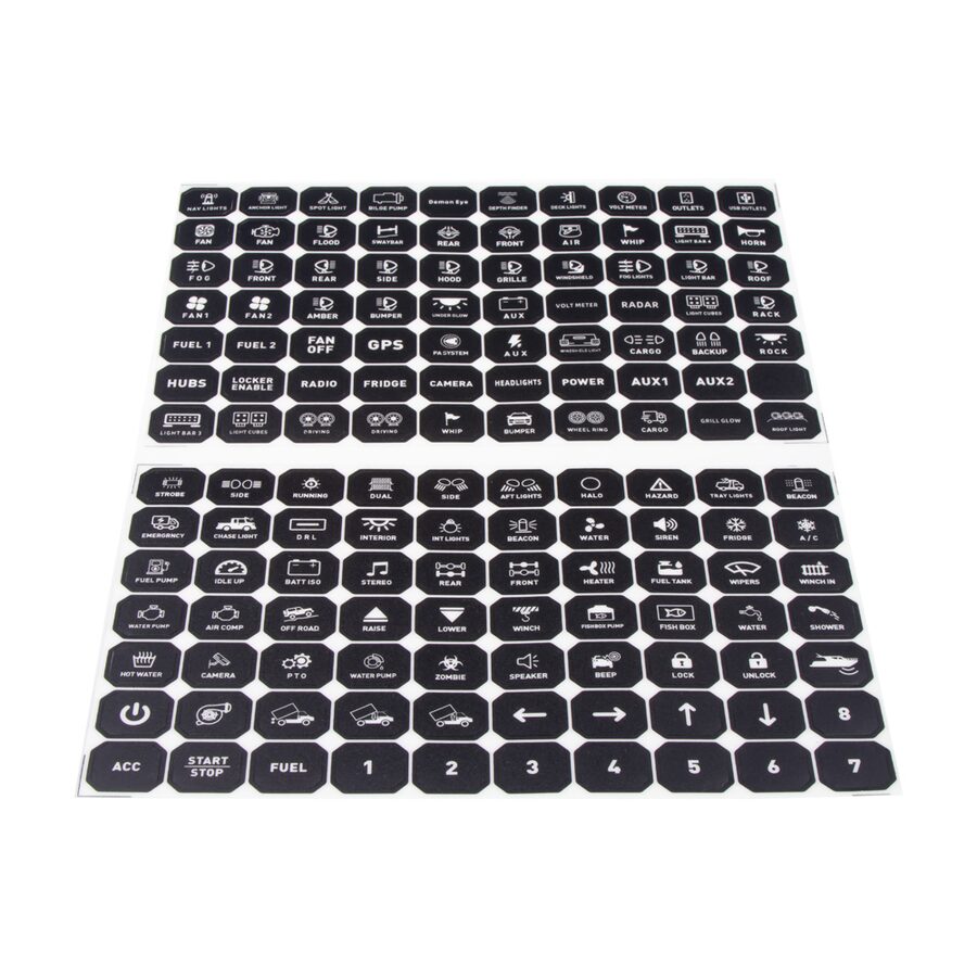 8 skupin spínacích výstupů, takže můžete externě ovládat např. 8 skupin LED světel a příslušenství dohromady, aniž byste zabírali další místo. Vysoká citlivost, stabilita a silná odolnost proti rušení. Snadno nainstalujete do 12 V a 24 V vozidel. Je vhodný pro různé typy automobilů, terénní vozidla, pick-upy, nákladní vozy atd. Různé spínače pro ovládání obecného elektrického vybavení ve vozidle: světlomety a jiná zařízení. Ovládací panel lze instalovat na přístrojovou desku, středovou konzolu, sedadlo, strop, A-sloupek ve vozidle atd. Přizpůsobitelné samolepicí štítky, které vám pomohou určit každé tlačítko podle vašich konkrétních potřeb (celkem 140 ks).