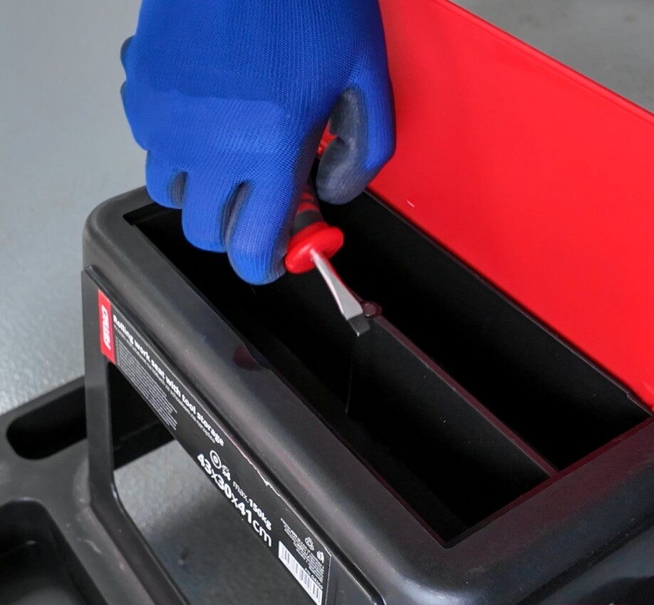 • Vestavěná přihrádka na nářadí: Integrovaný úložný prostor na klíče, šrouby, zásuvky a jiné drobnosti – vše, co potřebujete, máte vždy po ruce.