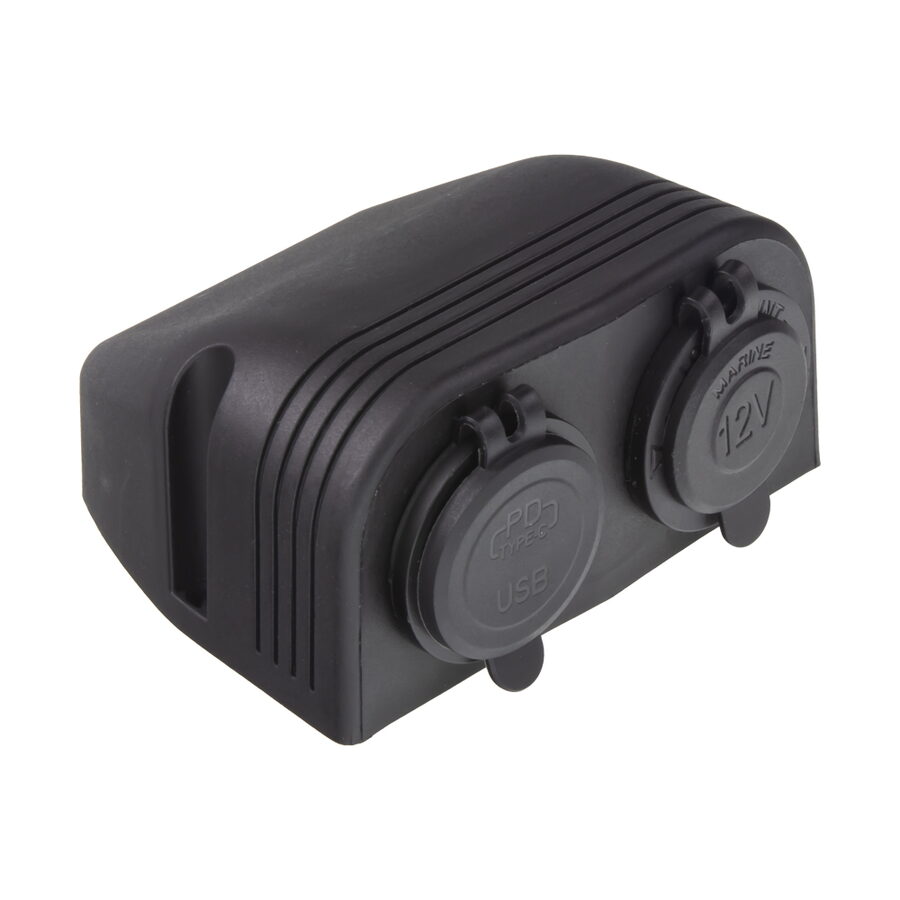 - Dvojitá zásuvka s panelem 1x CL + 2x nabíječka USB voděodolná