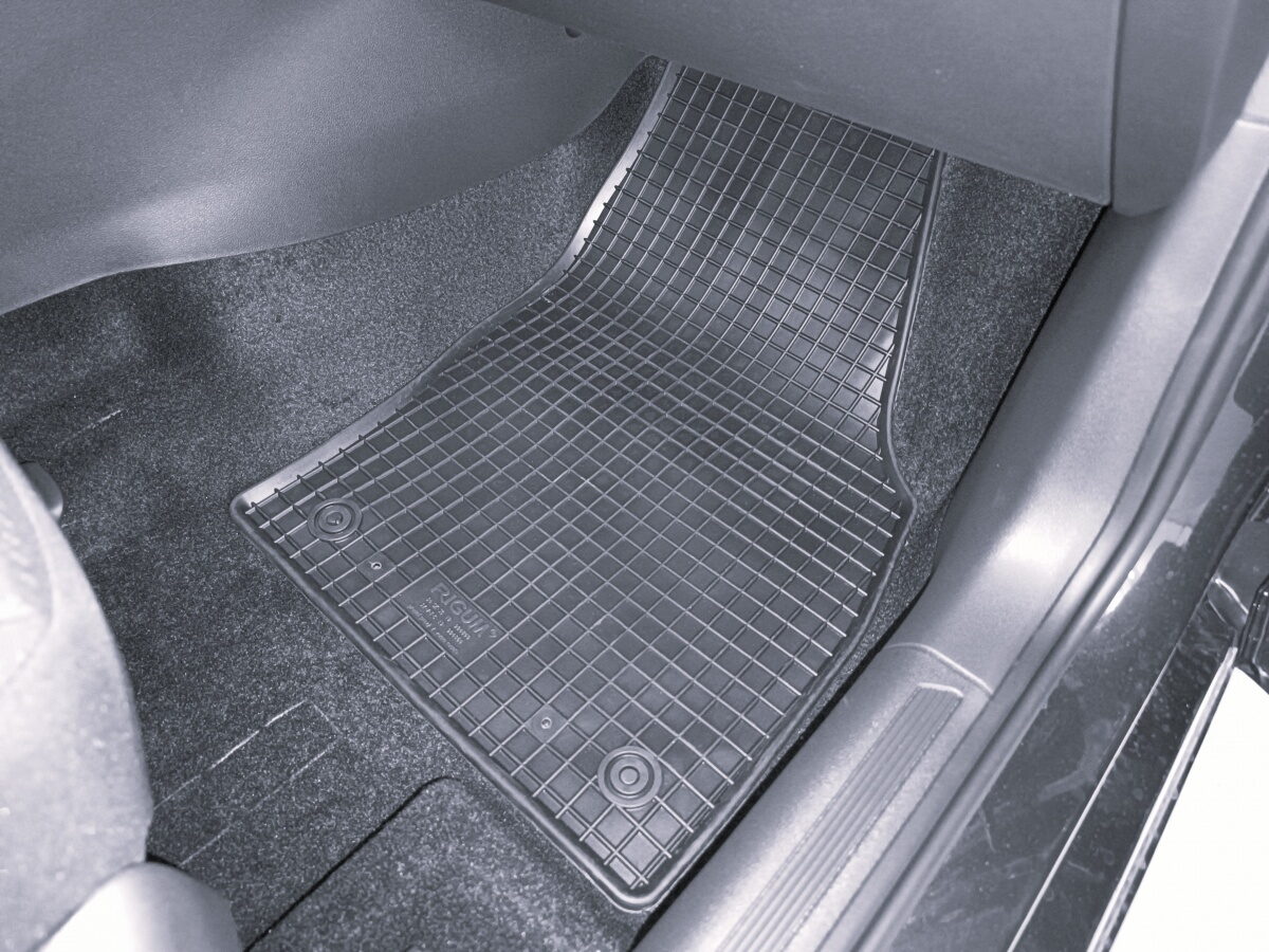 Gumové koberce jsou vyrobeny přesně pro typ Vašeho vozu. Koberec dokonale přiléhá ke tvarům podlahy a výborně chrání původní koberec vozidla před znečištěním. Díky použitým materiálům lze koberec bez problému čistit běžnými mycími prostředky. Autokoberce mají zvýšený okraj, který slouží pro zadržení vody např. v zimním období, díky tomuto zvýšenému kraji lze koberec bez problému vyjmout a vodu vylít. Nepříjemnému posunu koberců po podlaze vozidla či shrnování pod pedály účinně zamezí speciální protiskluzové tvarování na spodní straně koberců, které se snadno přichytí k originálnímu čalounění podlahy vozu.