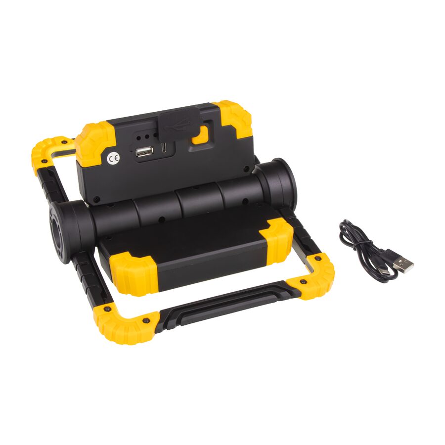 Nabíjecí pracovní / rekreační LED lampa. Jako zdroj světla má 2x 10 W COB LED modul. Konstrukčně je COB LED tvořena jednotlivými čipy, umístěnými na plošném spoji a pokryta vrstvou luminoforu, vytvářející dohromady homogenní svíticí plochu. Tyto moduly pak vyzařují světlo téměř souvisle po celé ploše. Díky montáži přímo na hliníkový plát se moduly méně zahřívají a významně se tak prodlužuje životnost. Montážní lampa má praktický design s otočnou základnou (360°). Každé ze dvou světel lze natočit samostatně v jiném úhlu. Nespornou výhodou je absence kabelu, který je v mnoha případech důvodem pádu a poškození běžných zářivek.