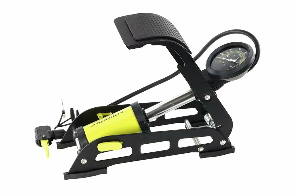 Jednopístové nožní čerpadlo s analogovým manometrem a stupnicí 11 BAR (160 PSI) je vhodné pro rychlé a efektivní huštění pneumatik a jiných nafukovacích předmětů. Vybaveno 68cm hadicí s multifunkční koncovkou a třemi čerpacími adaptéry.