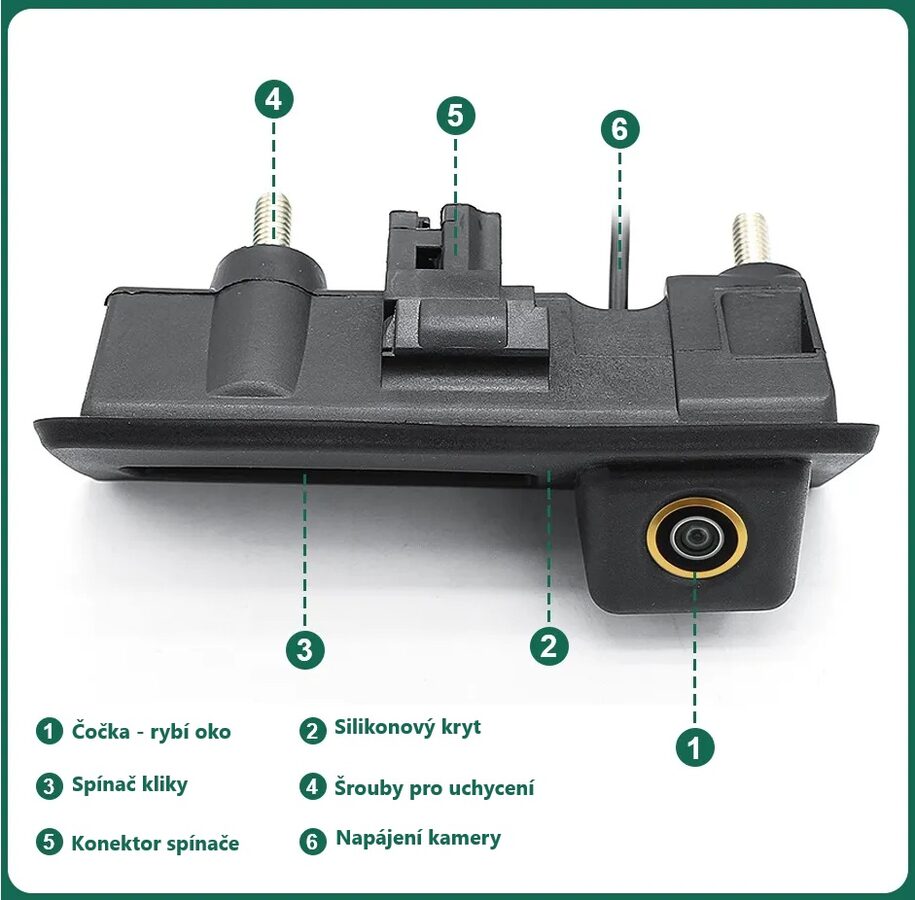 - Kamera AHD/CVBS do vozu Audi / Škoda / Volkswagen v madle kufru