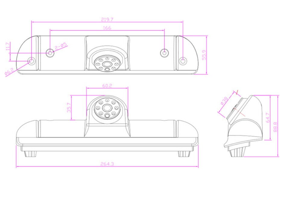 Barevná kamera zabudovaná ve 3. brzdovém světle. Součástí je LED brzdové světlo pro vozy Citroën, Fiat a Peugeot.