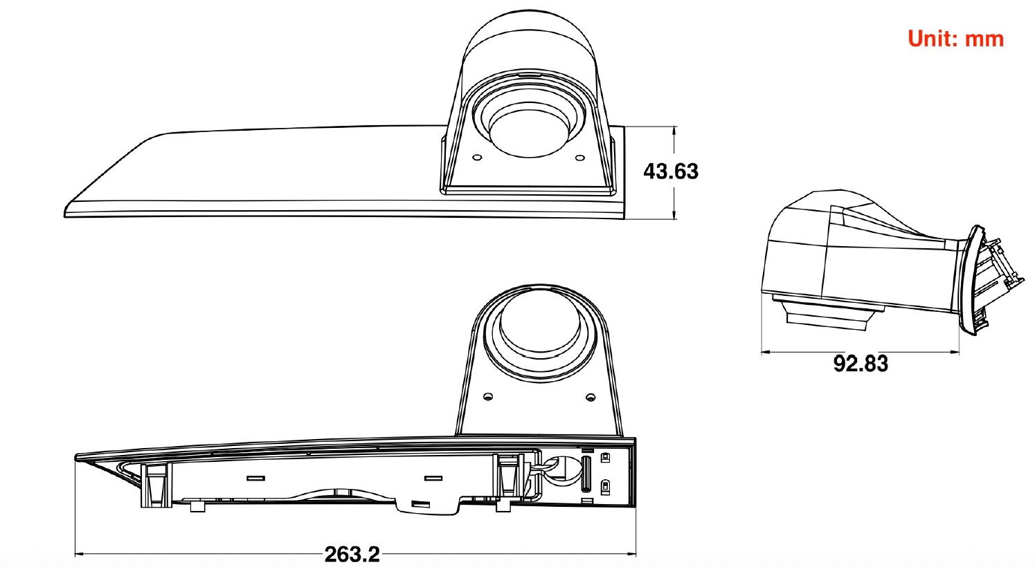 Barevná kamera zabudovaná ve 3. brzdovém světle. Vhodné např. pro kombinaci s monitory, nebo s adaptéry mi-xxx pro připojení k originální navigaci.