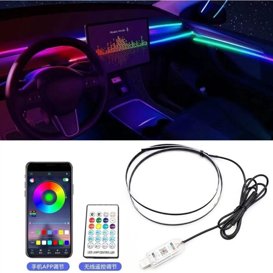 Vhodné jako efektní podsvícení palubních desek, dveří a interiérů automobilů. Podsvětlení se ovládá pomocí dálkového ovladače nebo Bluetooth telefonem iOS nebo Android.