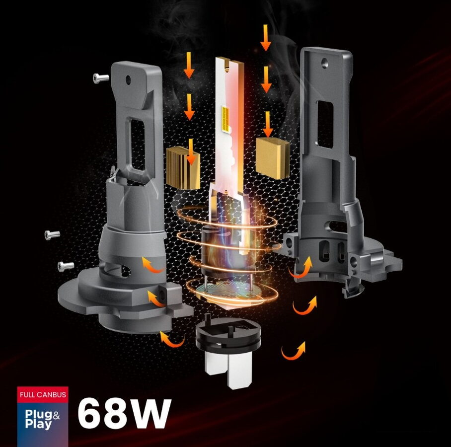LED autožárovky F25 PRO BLACK H7 H18 bílá Canbus, 12/24V, 68W, 7646 lm - 2 ks.