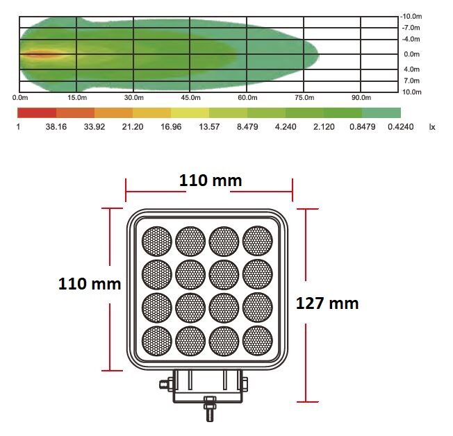- LED světlo hranaté, bílé/oranžové, 16x3W/16x1W, 117x117mm, ECE R10