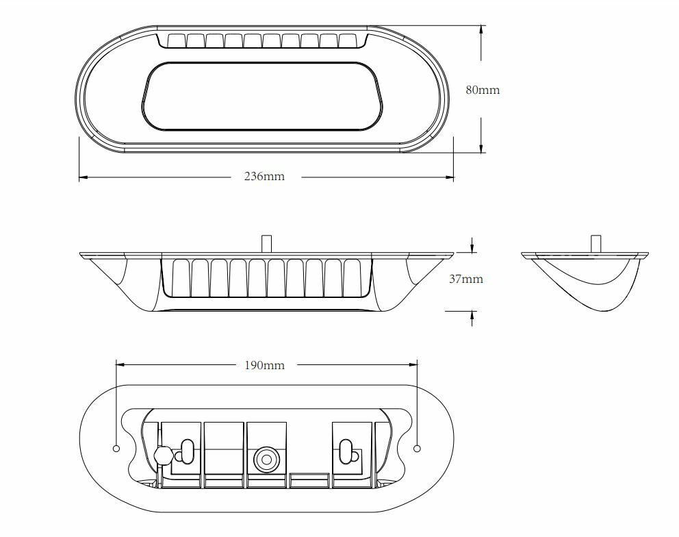 Vysoce výkonné nástěnné světlo, určené pro povrchovou montáž na stranu vozidla, především na různé pracovní stroje, sanitky, hasiče, zásahová vozidla, obytné automobily a karavany.