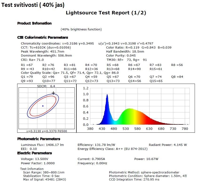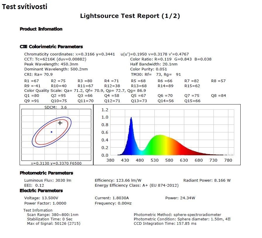 • světelný tok 3300 LM (RAW) / 1046 LM (efektivní)