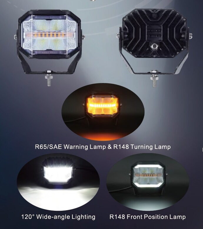Profesionální DUAL LED světlo, bílé / oranžové / poziční / směrové na pracovní stroje, vhodné zejména pro nákladní automobily, bagry, nakladače, offroad vozy a jinou pracovní techniku.