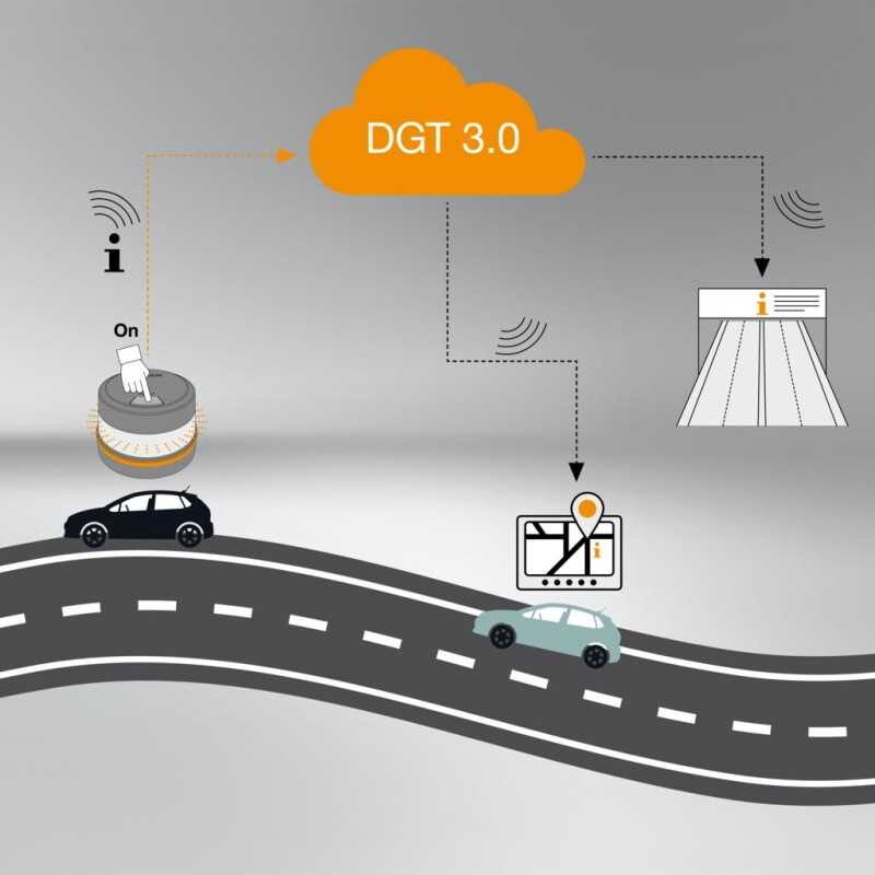 Propojení s platformou DGT 3.0 umožňuje lokalizaci v reálném čase a okamžitě přenáší důležité informace o potenciálně nebezpečné situaci v silniční dopravě na navigační přístroje jiných řidičů.