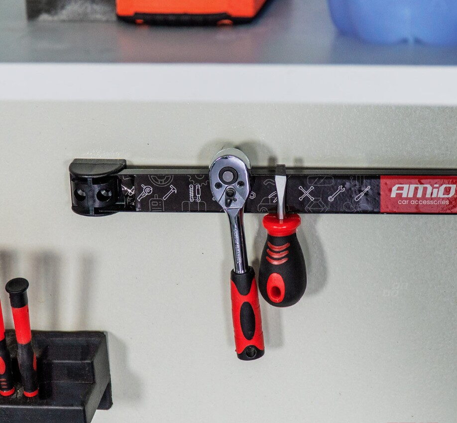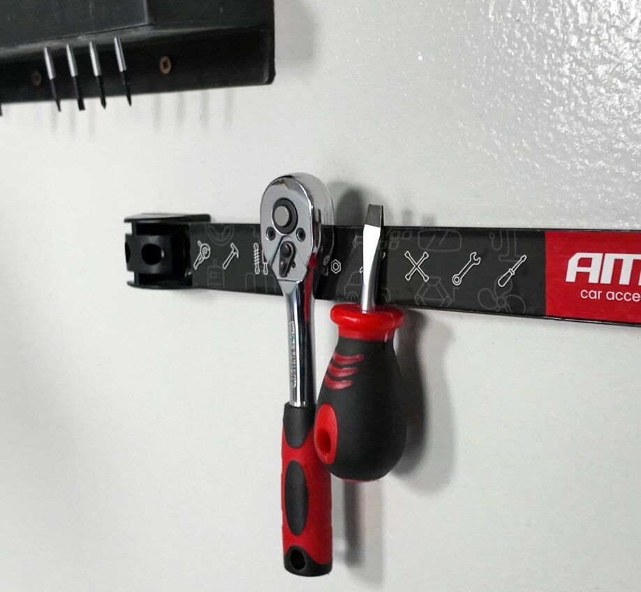 Jedná se o ideální řešení pro uložení nářadí, nožů, klíčů a jiných kovových předmětů, které je dobré mít vždy po ruce.
