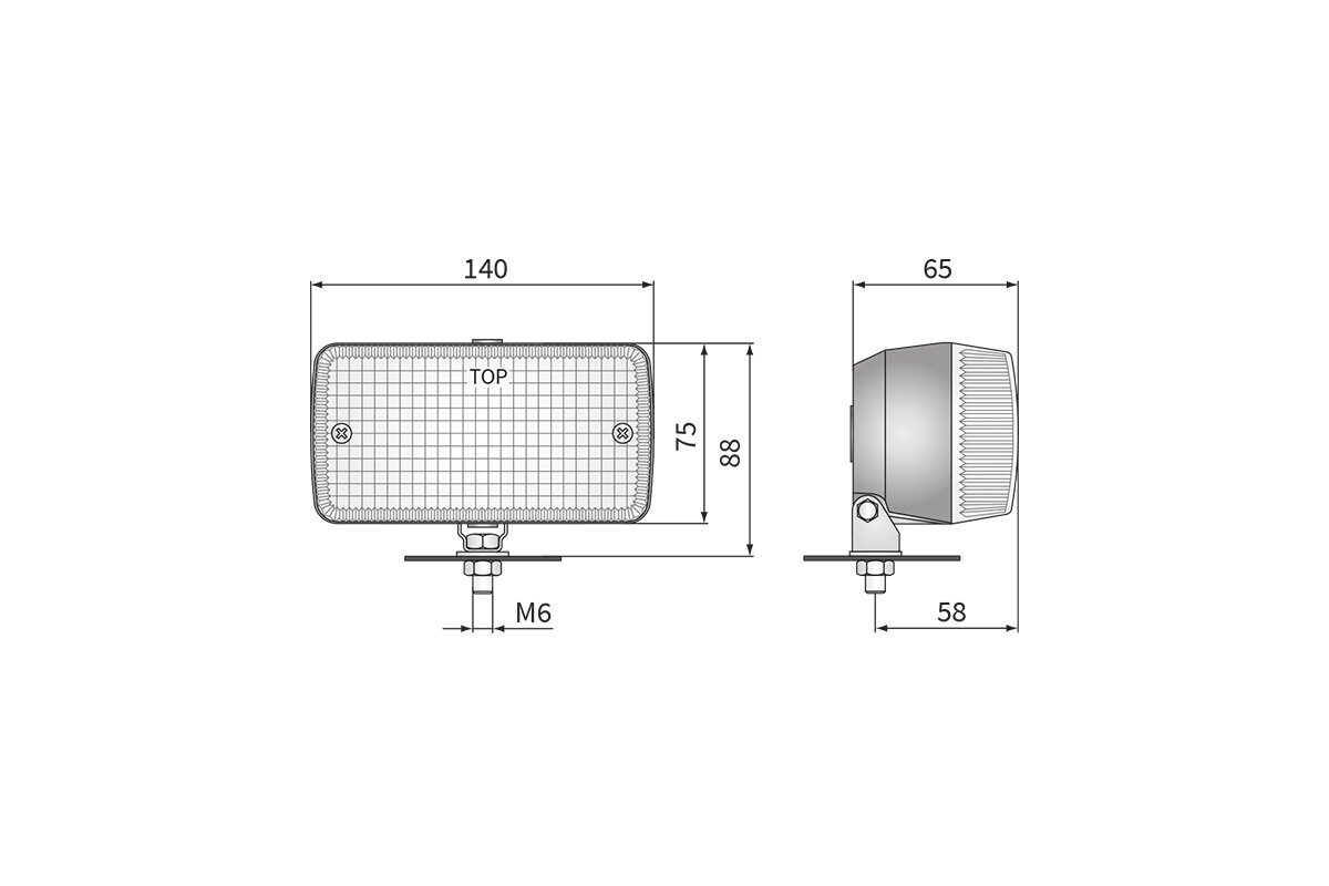 Světlo je vybaveno odolnou konstrukcí s krytím IP54, které chrání proti prachu a stříkající vodě. Univerzální napájení 12–24 V DC umožňuje jeho použití na různých typech vozidel – od osobních až po pracovní a zemědělské stroje. Kompaktní rozměry 140 × 75 × 65 mm usnadňují instalaci na zadní část vozidla.