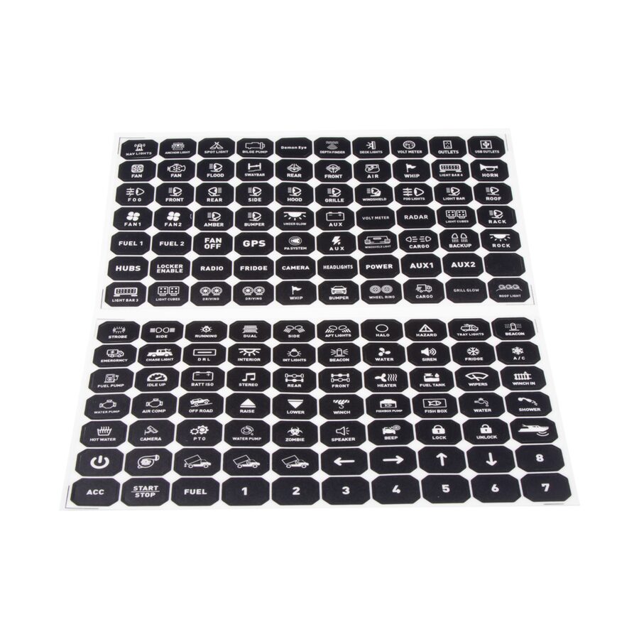 Snadno nainstalujete do 12 V a 24 V vozidel. Je vhodný pro různé typy automobilů, terénní vozidla, pickupy, nákladní vozy atd. Různé spínače pro ovládání obecného elektrického vybavení ve vozidle: světlomety a jiná zařízení. Ovládací panel lze instalovat na přístrojovou desku, středovou konzolu, sedadlo, strop, A-sloupek ve vozidle atd. Přizpůsobitelné samolepicí štítky, které vám pomohou určit každé tlačítko podle vašich konkrétních potřeb (celkem 140 ks).