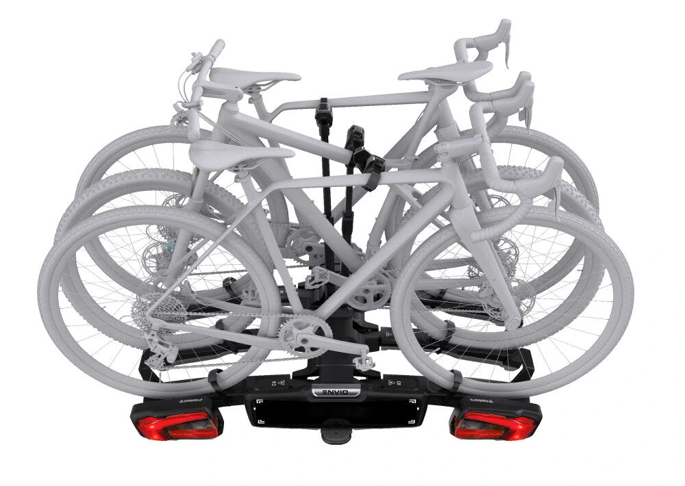 ENVIO eMAX 3 je robustní nosič kol na tažné zařízení pro 3 kola včetně elektrokol.