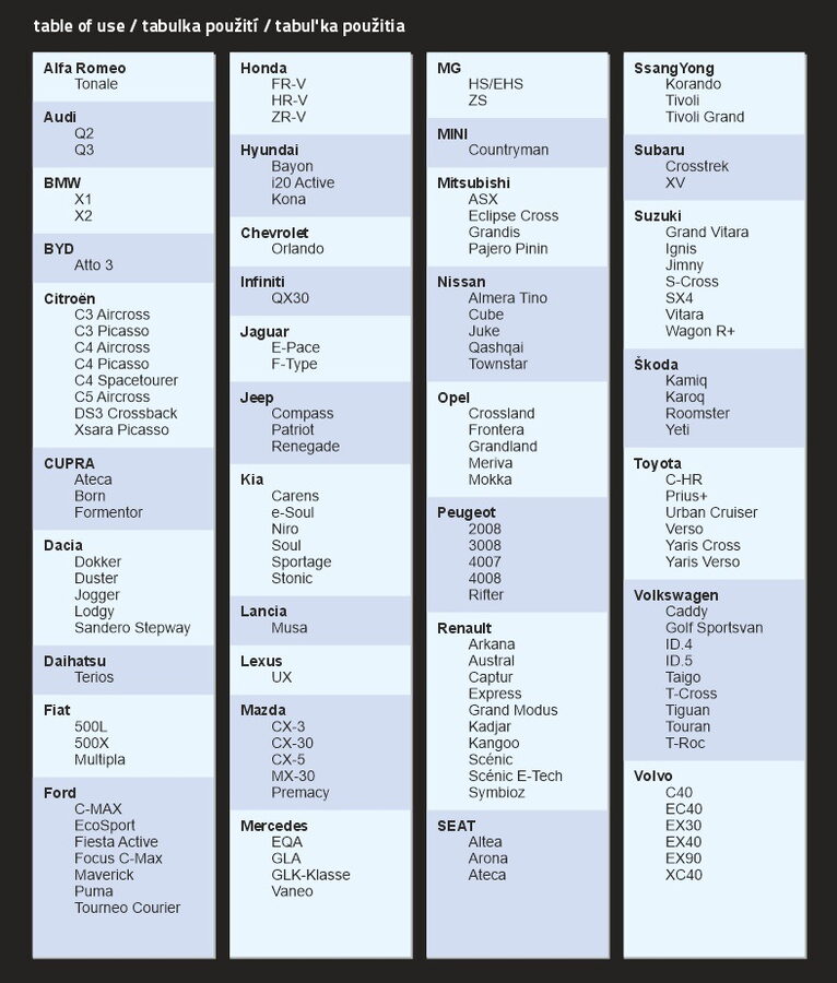 | velikost CITY-SUV - vhodné pro vozy: | |