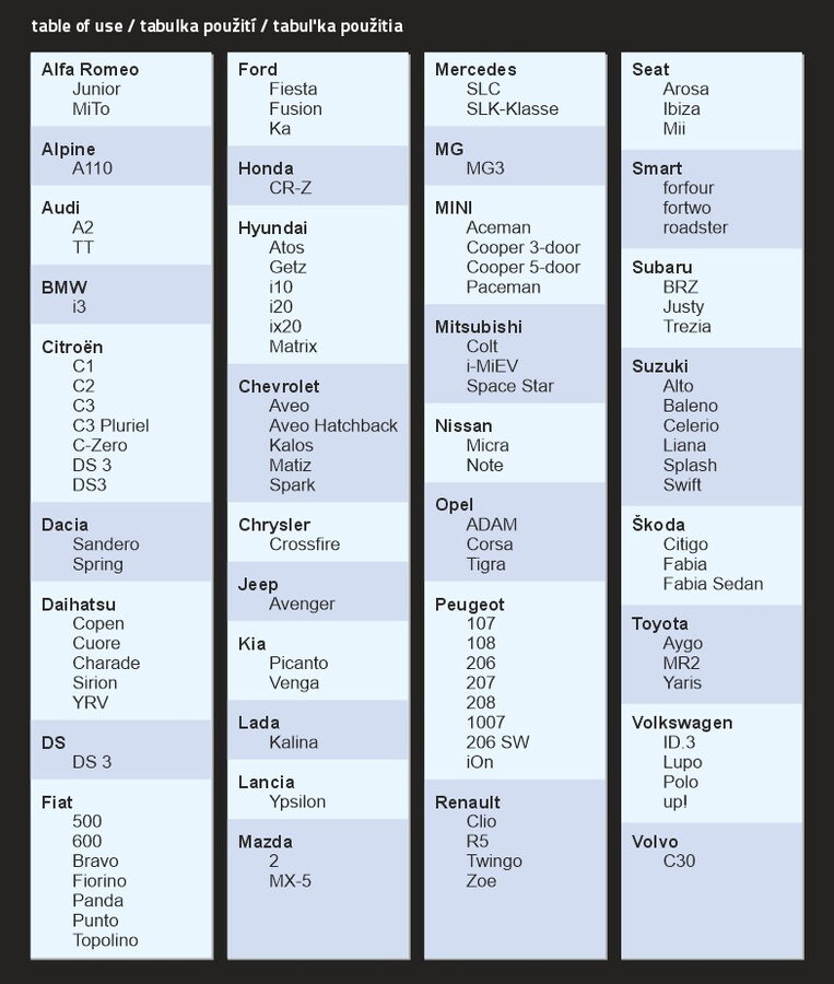 | velikost M - vhodné pro vozy: | |