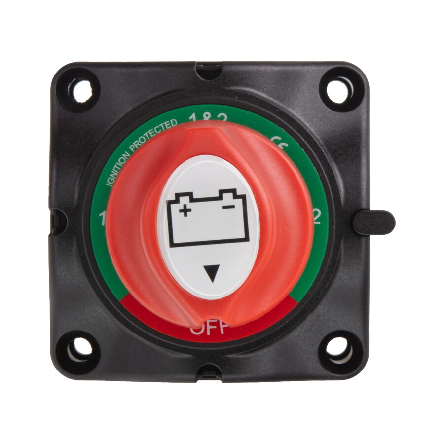 Odpojovač baterie představuje účinnou pojistku proti vzniku nechtěného požáru v případě poškození kabeláže Vašeho vozidla během jízdy (pouze v případě, kdy je pomocí proudového odpojovače přerušen přívod elektrického proudu). Vypínačem lze najednou kompletně vypnout přívod el. proudu v celém automobilu. Odpojovač slouží také k odpojení navijáku od baterie. Využívá se v případech neočekávaného selhání ovládání navijáků jako poslední možnost přerušení přívodu el. napětí. Díky odpojení baterie nedochází k odběru proudu z baterie a jejímu následnému vybití. Vhodný také pro přepínání nebo odpojování záložních baterií, kdy umožnuje přepínač přepínat mezi oběma bateriemi. Můžete zvolit 1. nebo 2. baterii, případně obě propojit, nebo obě odpojit.