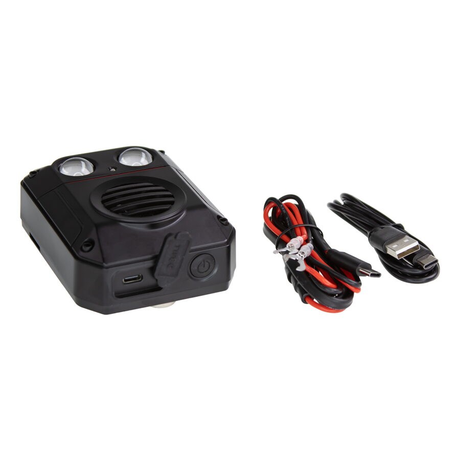 • balení obsahuje: 1x plašičku, 2x napájecí kabel (USB / USB-C, USB-C / svorky k autobaterii, 4x stahovací pásky, návod