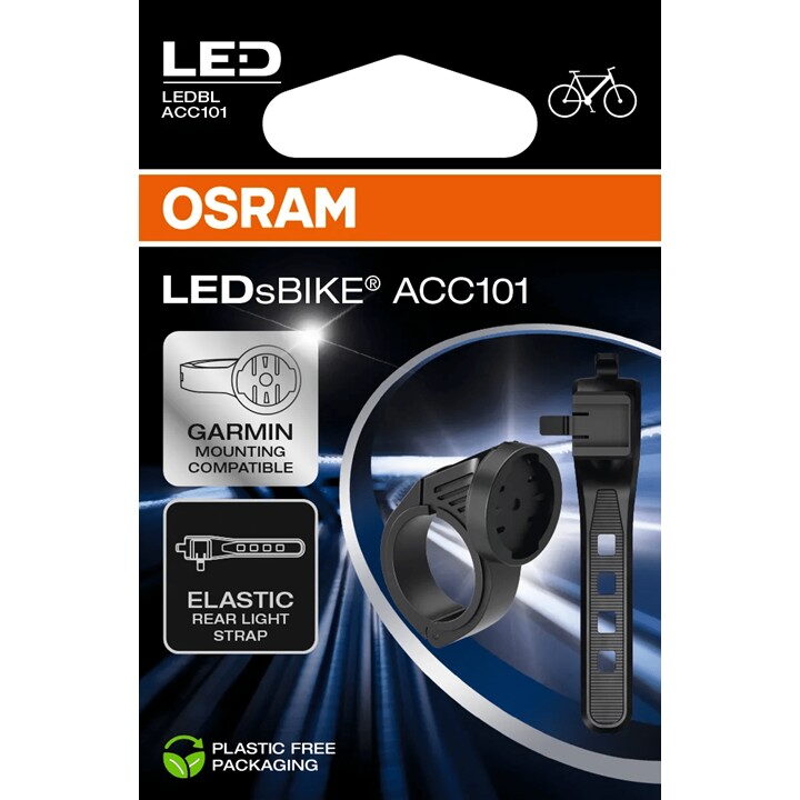 Tato sada obsahuje Garmin-kompatibilní držák pro přední světlo a flexibilní gumový pásek pro zadní světlo.