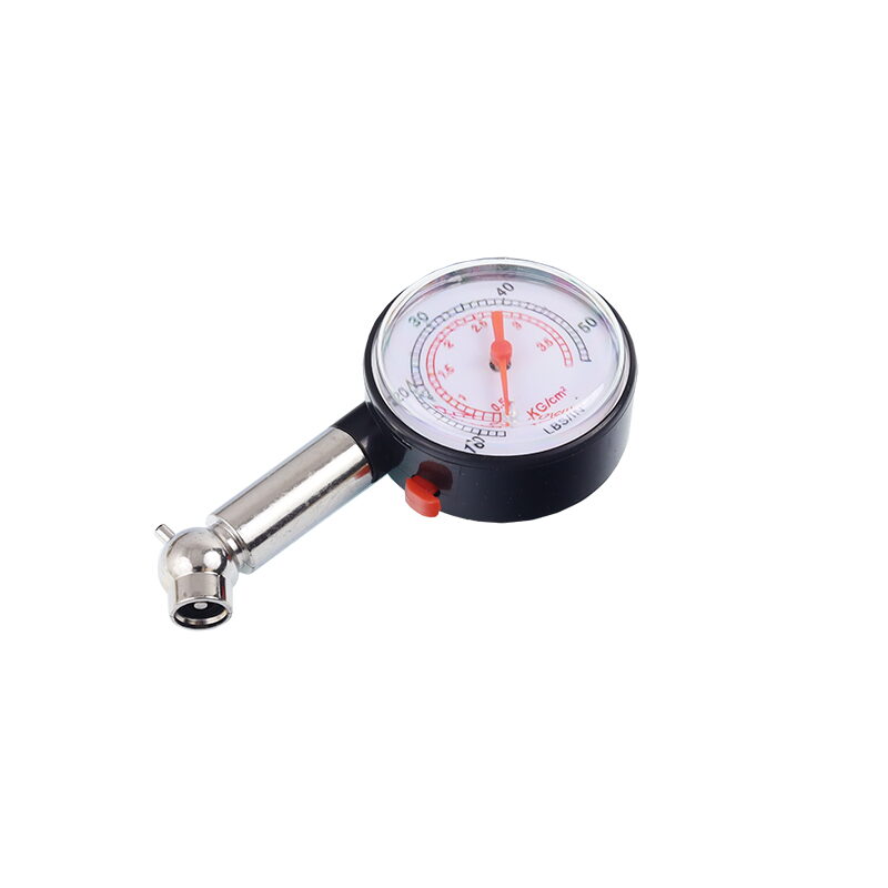 Přesné měření, snadné použití. 0 - 4 BAR (kg/cm2). Zahnutá koncovka, pro lepší dostupnost. Obsahuje STOP (nulovací) tlačítko.