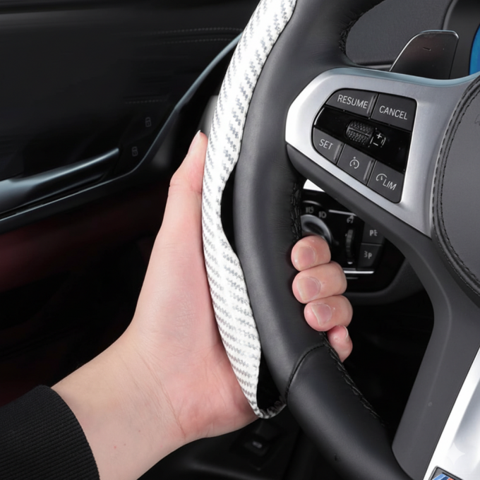 - Potah na volant dvoudílný carbon stříbrno-bílý 37-39cm