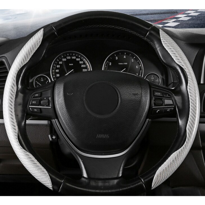 Potah na volant dvoudílný carbon stříbrno-bílý 37-39cm.
