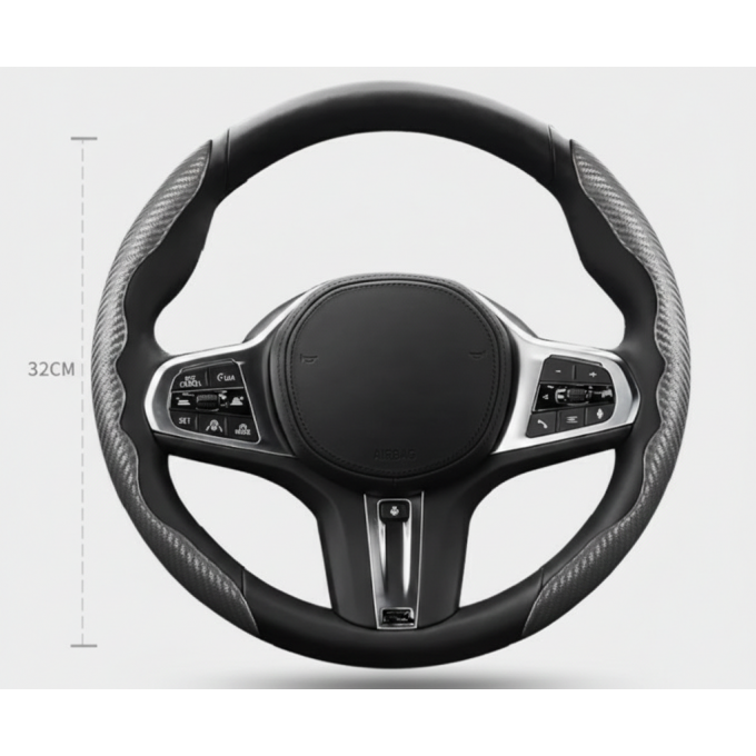 Potah na volant dvoudílný carbon stříbrno-černý 37-39cm.