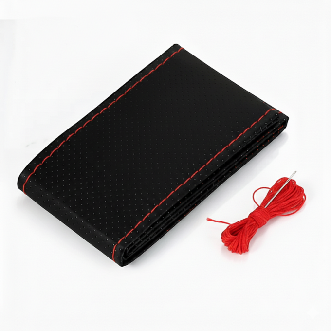 Potah volantu perforovaný černý s červenou nití 37-38cm.