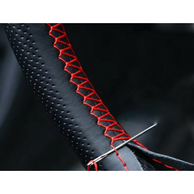 Potah volantu perforovaný černý s červenou nití 37-38cm