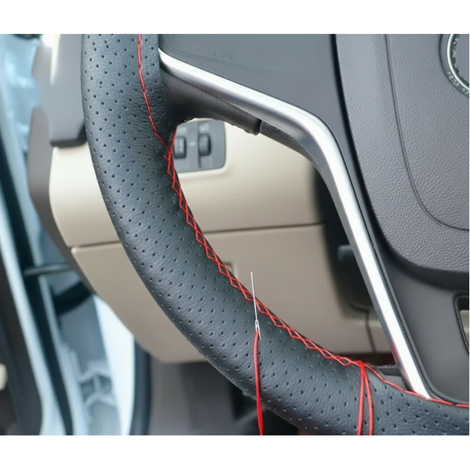 - Potah volantu perforovaný černý s červenou nití 37-38cm